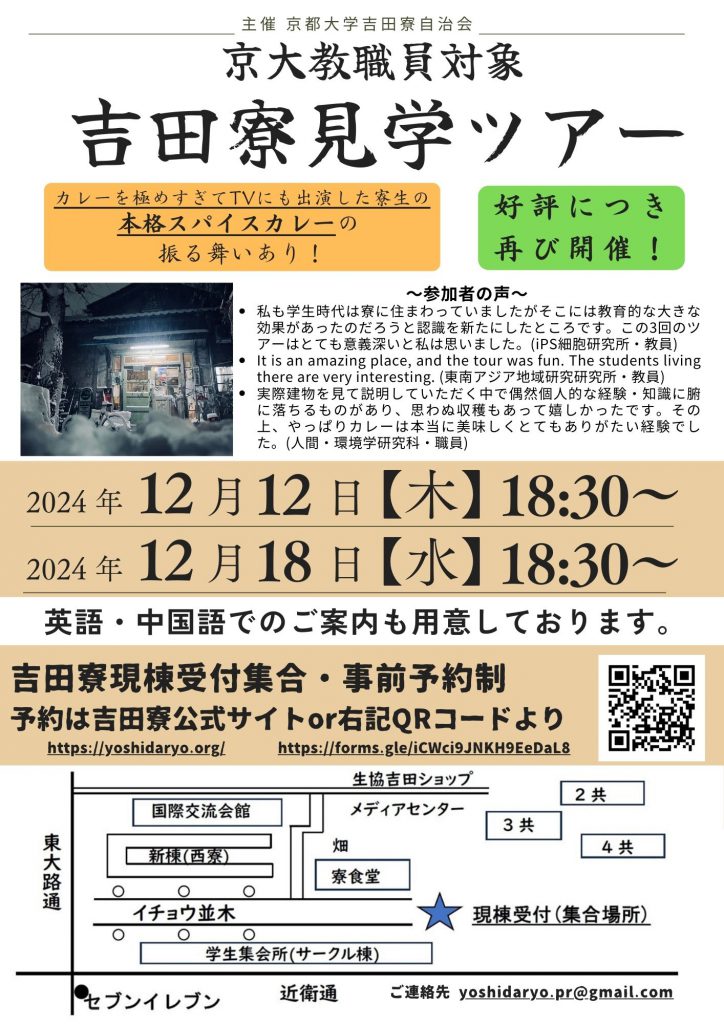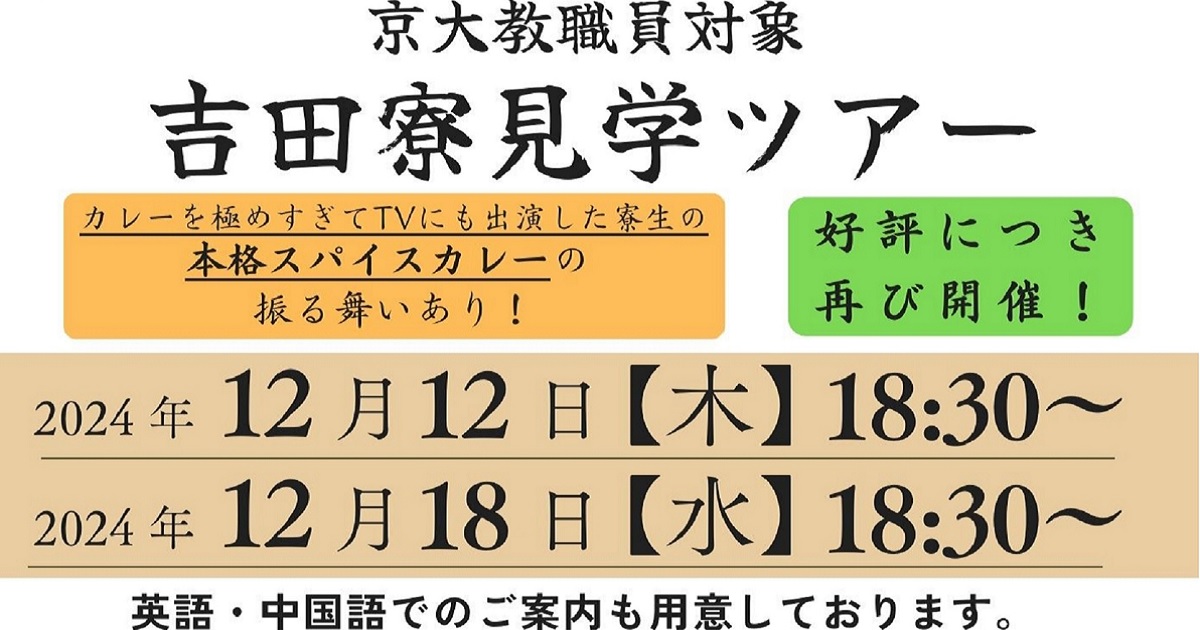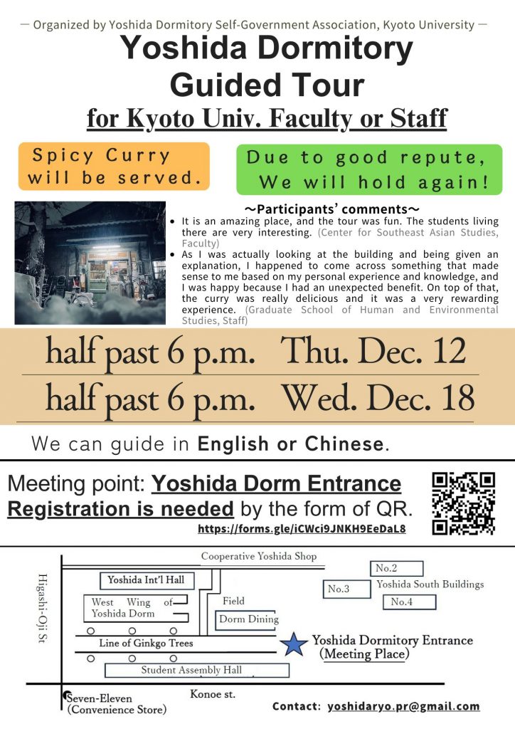 この度吉田寮において、京大の教職員の方々を対象とする見学ツアー【第2弾】を実施することとなりました。2024年10月に第一弾を開催しましたが、好評につき再実施いたします!