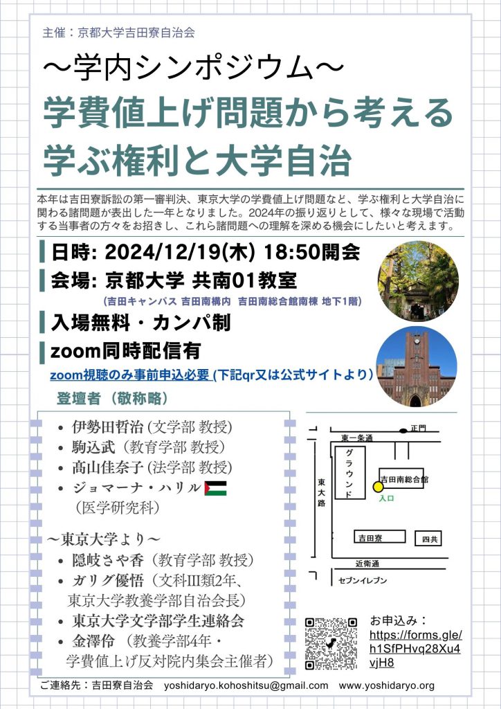 2024年12月19日(木)吉田寮自治会主催シンポジウム開催のお知らせ