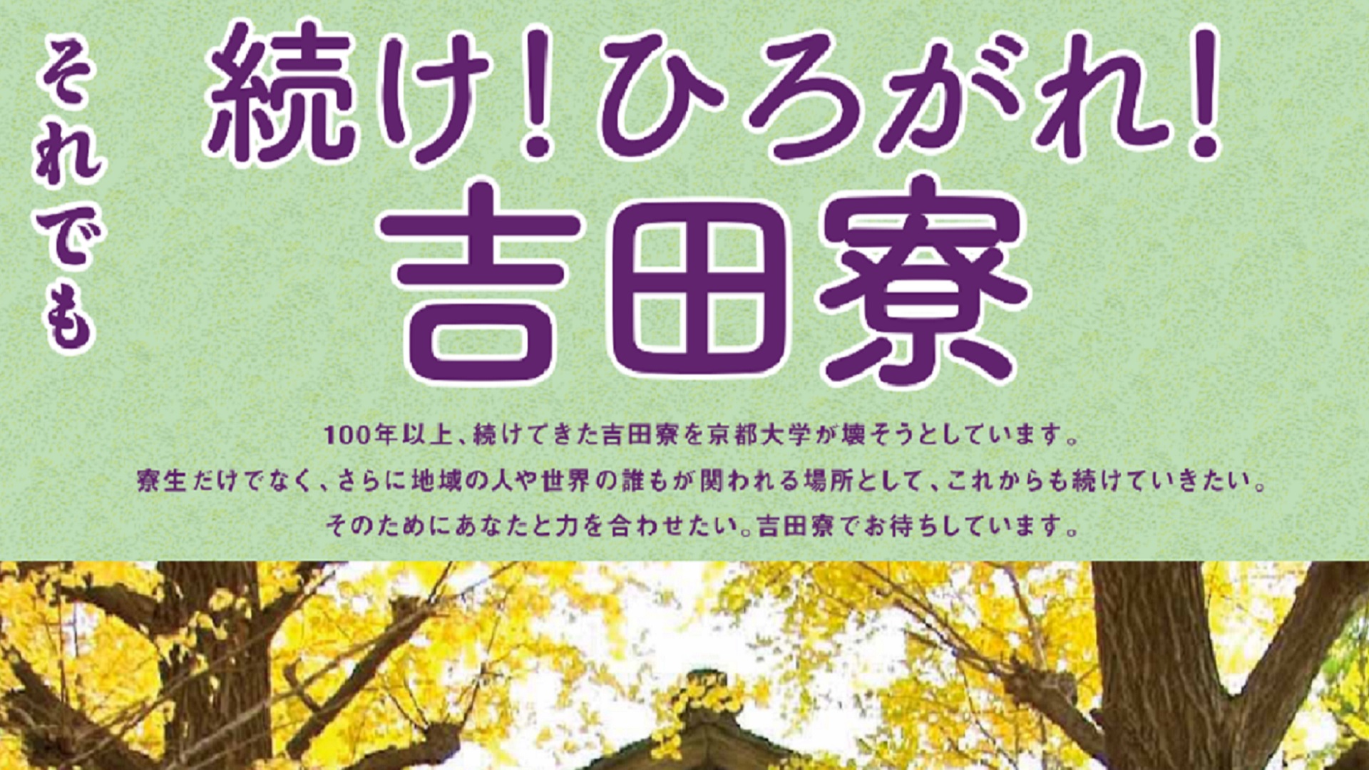 吉田寮の存続のため、ご支援をお願いしております。